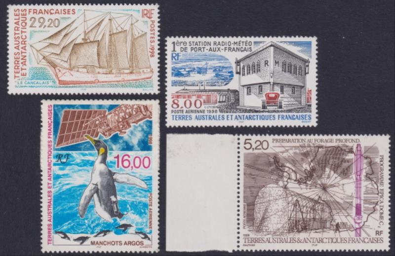 2042 * imageFSAT 1998 5.2F Air Epical Dome; 8f Air First Met Radio Station; 16F Air Penguin Research; 29.2F Schooner. SG 386-8, 391. Cat c£51. MUH. (Image)