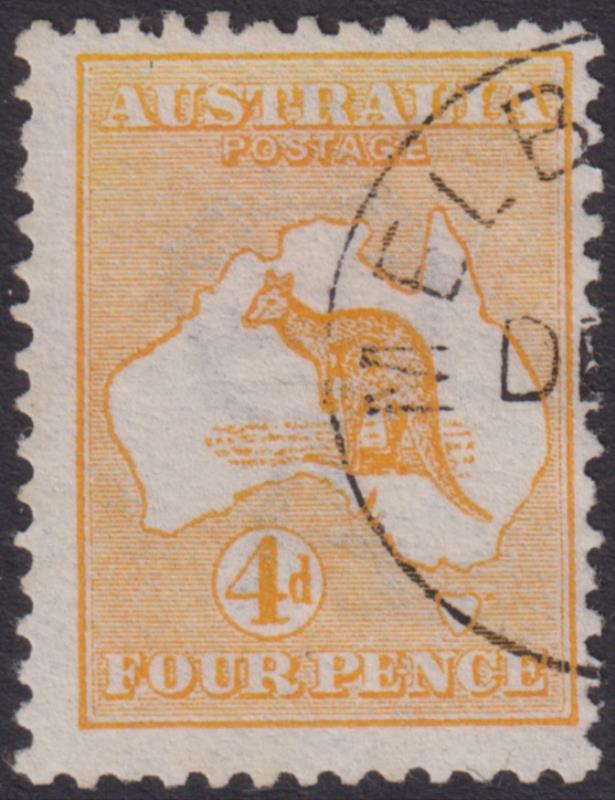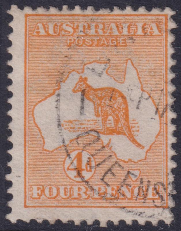 1913 4d Roo orange, 1st wmk, p12, very fine cancel. SG 6. Cat £27. FU. (Image)
