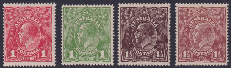1919-24 1d carmine, 1½d black-brown, 1½d red-brown, 1d sage-green GV, all mult crown over A wmk, p14. Cat £59.50. Mint. (Image)