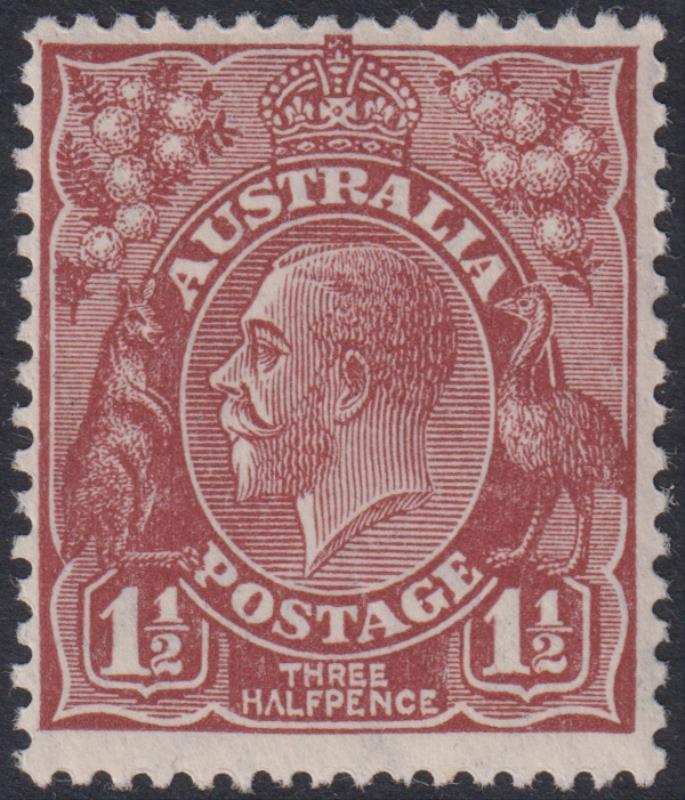 1919 1½d GV chocolate, crowns wmk. BW 86. Cat A$30. MUH. (Image)