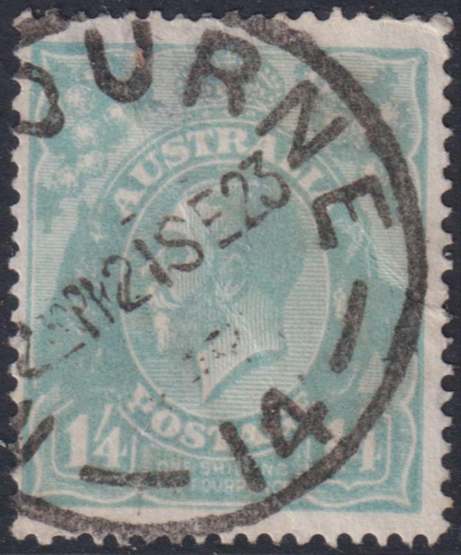 1920 1/4d GV dull greenish blue. SG 66a. Cat £29. FU. (Image)