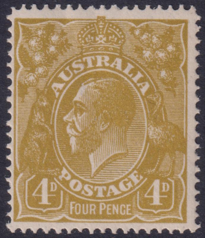 1924 4d GV olive-yellow, p14, crown over A wmk, o/c. SG 80. Cat £35+. MUH.