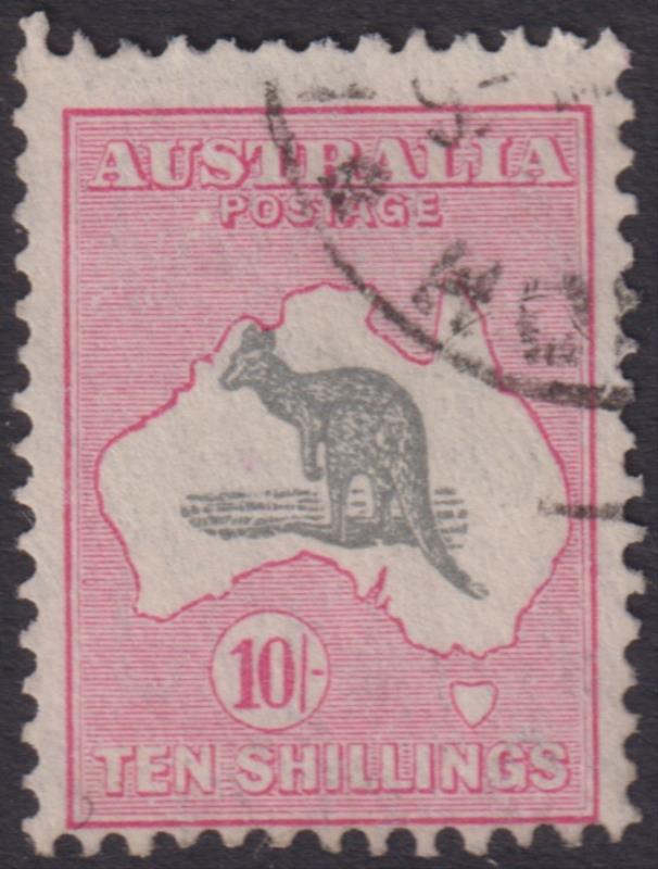 1932 10/- Roo, Die II, C of A wmk, o/c to base. SG 136. Cat £160. FU. (Image)