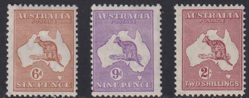 1932-5 Roos short set of 3 (6d-2/-), p12, mult crown/C of A wmk. SG 132-4. Cat £100. Mint. (Image)