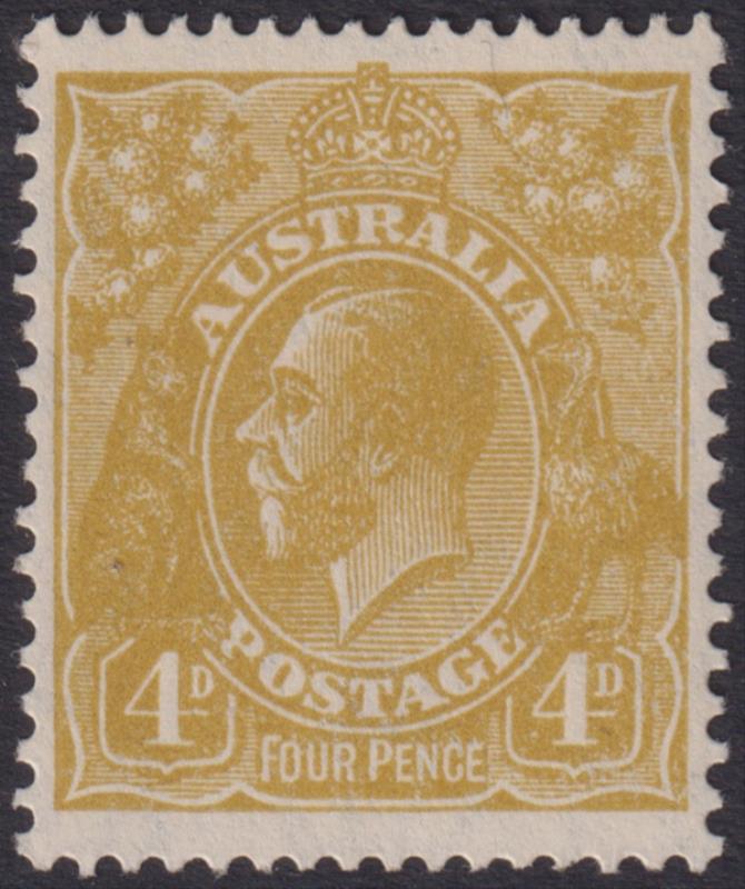 1933 4d GV yellow-olive, C of A wmk. SG 129. Cat £24. Mint. (Image)