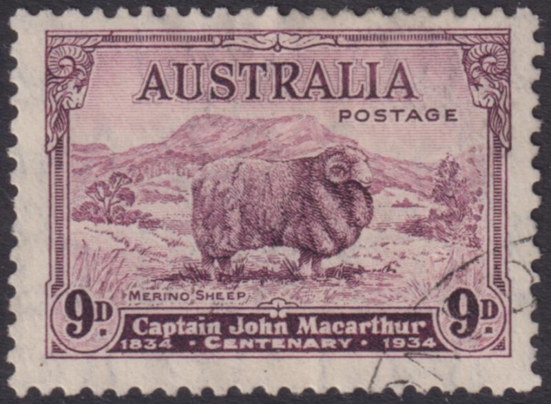 1934 9d Macarthur Centenary, light cds. SG 152. Cat £45. FU. (Image)