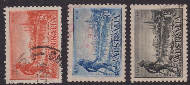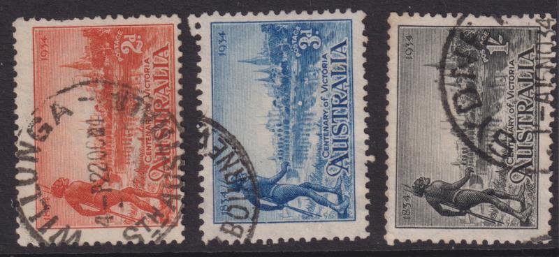 1934 Victoria Centenary set, p10½ (3v). SG 147-9. Cat £26. FU. (Image)