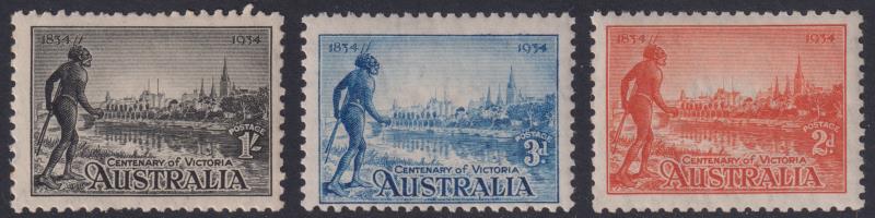 1934 Victoria Centenary set, p10½. SG 147-9. Cat £55. Mint. (Image)