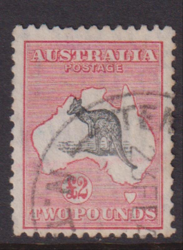 1934 £2 Roo black & rose, die II, C of A wmk. SG 138. Cat £650. VFU. (Image)