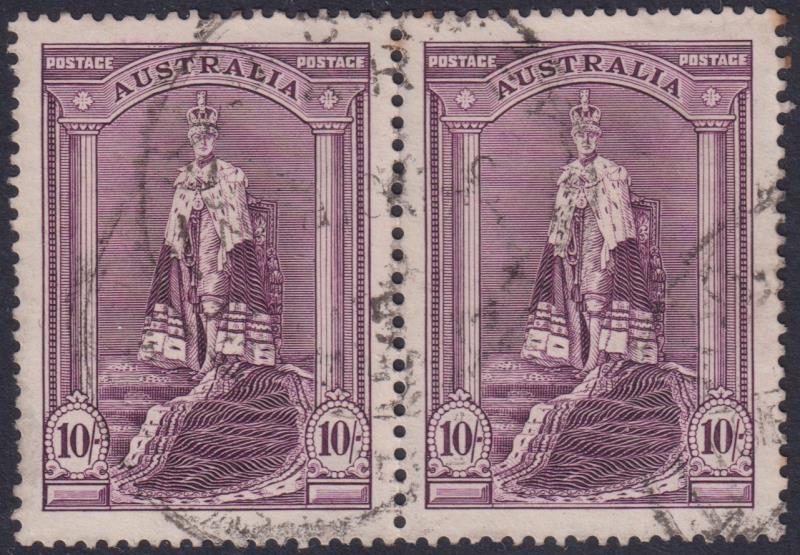 1938 10/- Robes horiz pair, thick paper. SG 177. Cat £34. FU. (Image)