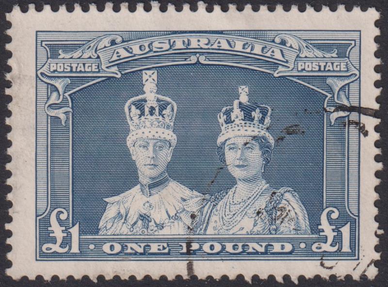 1938 £1 Robes bluish slate, original thick paper. SG 178. Cat £35. FU. (Image)