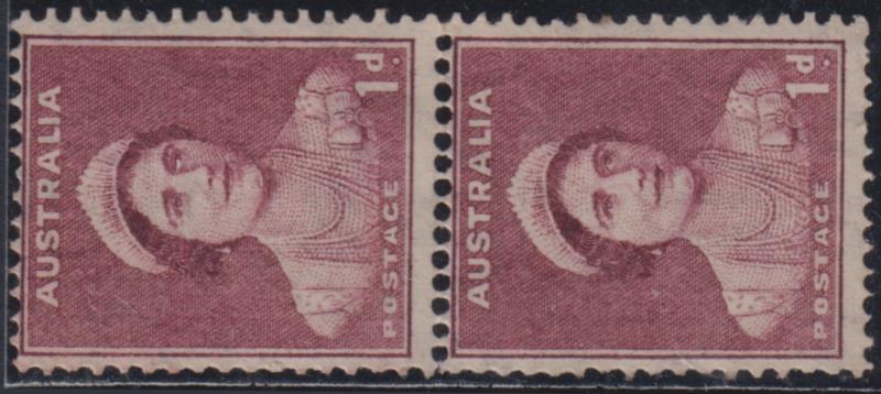 1942 1d Queen Elizabeth (mother) maroon vert coil pair, p15 x 14. SG 181a. Cat £18. MUH. (Image)