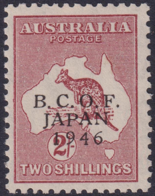 1946 2/- Roo maroon, BCOF ovpt. SG 36. Cat £50. MUH.