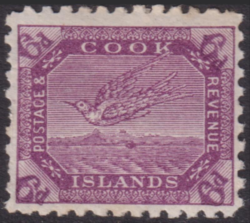 Cook Isl 1898 6d Tern purple, p11. SG 18. Cat £50. FU. (Image)