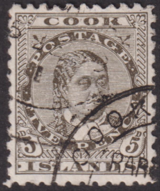 Cook Isl 1896 5d Makea olive-black, p11. SG 17. Cat £23. FU. (Image)