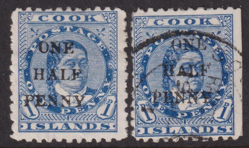 Cook Isl 1899 ½d on 1d Makea blue, imperf RH side FU & ½d on 1d MNG. SG 21. Cat £95. (Image)