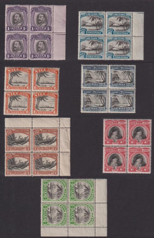 Niue 1932 ½d - 1/- Pictorials set in blocks of 4. SG 55-61. Cat £220 as mint. Fresh MUH. (Image)