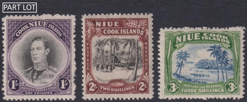 Niue 1944-45 1/-, 2/- & 3/- GVI & Pictorials. SG 95-97. Cat £25. Mint.