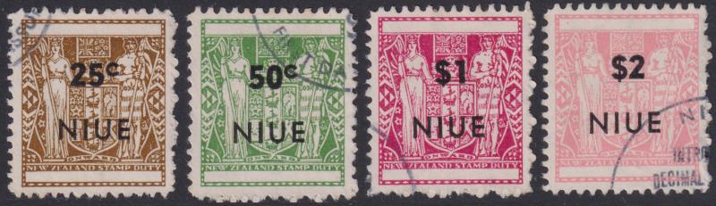 Niue 1967 25c-$2 Arms decimal ovpts set of 4, scarce rough p11. SG 135a-138a. Cat £55. FU. (Image)