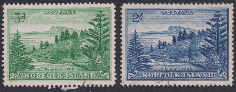 2461 U imageNorfolk 1959 3d emerald-green & 2/- deep blue Ball Bay. SG 6a, 12a. Cat £24. VFU. (Image)