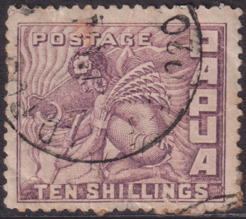 2467 U imagePapua 1932 10/- Native, mult creases. SG 144. Cat £120. FU. (Image)