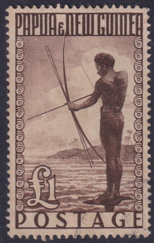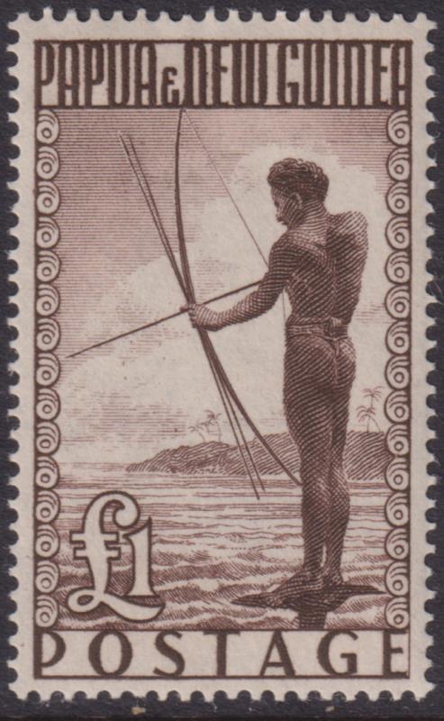 2473 M imagePNG 1952 £1 Shooting Fish, deep brown. SG 15. Cat £55. Unused, mint no gum. (Image)