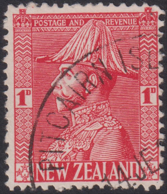 2478 U imagePitcairn c1927-34 clear part strike (PITCAIRN ISL-) of "Pitcairn Island Postal Agency" 32mm diameter J-type cds 14 JE {??} on NZ 1d GV Field Marshal, p14. SG Z15. Cat £30. (Image)