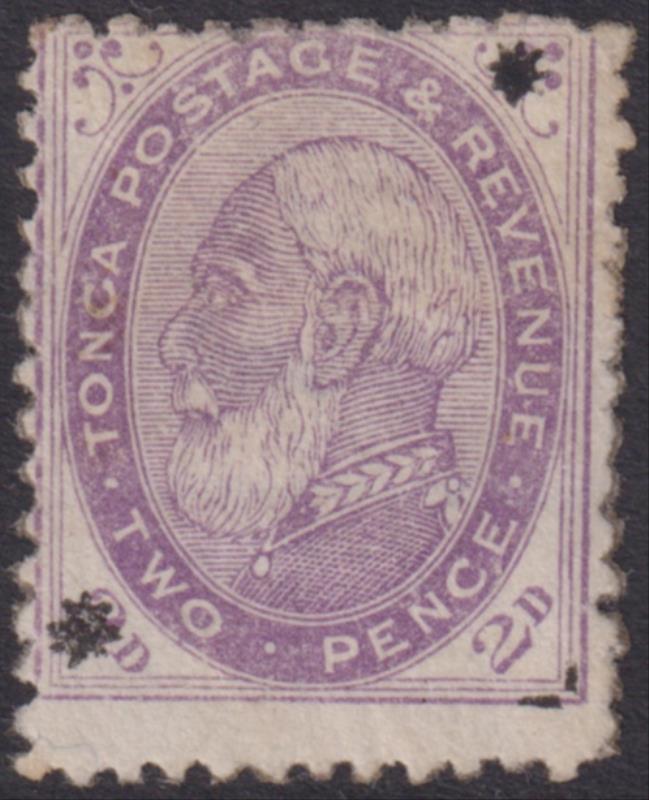 Tonga 1891 2d King George I violet, p12½, stars ovpt, type 1 (normal), slight discolouration. SG 8. Cat £90. Mint. (Image)