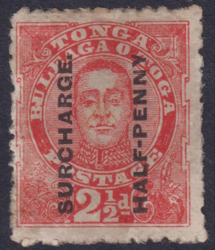 Tonga 1895 ½d surcharge on 2½d vermilion (King George II). SG 29. Cat £50. Mint. (Image)