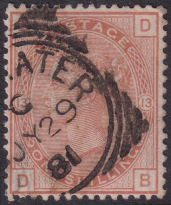 1881 1/- orange-brown, large coloured letters (pl 13), wmk Imperial Crown. SG 163. Cat £80. GU nearly FU. (Image)