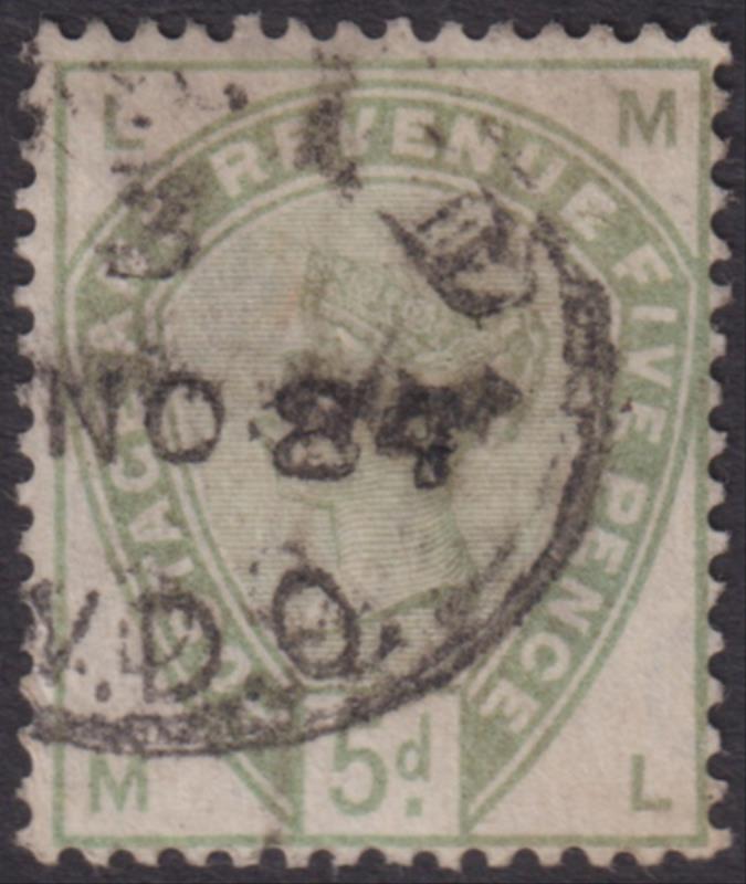 1883 5d dull green, good colour. SG 193. Cat £75. GU/FU. (Image)