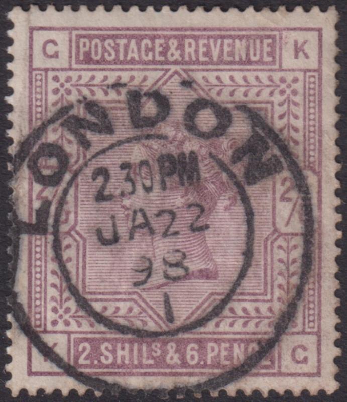 1883 2/6d deep lilac, anchor wmk, white paper, near complete London cds 1898. SG 179. Cat £125. GU/FU. (Image)