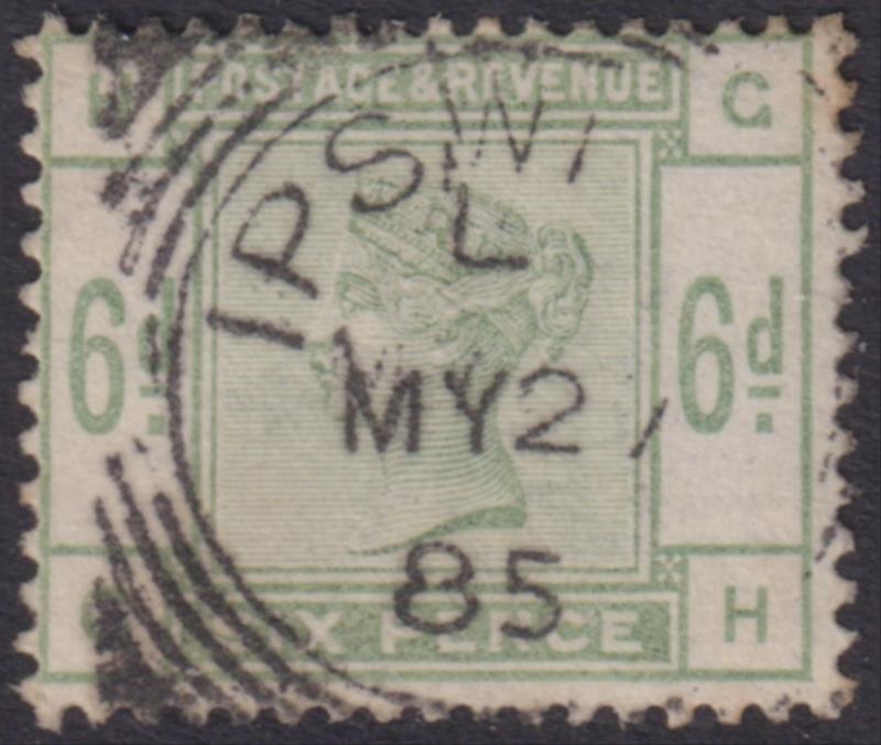1884 6d dull green (GH), Ipswich MY 27 85 cds, good colour. SG 194. Cat £100. FU. (Image)