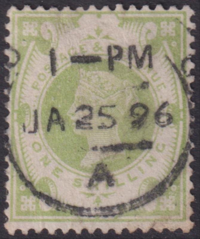 1887 1/- dull green. SG 211. Cat £80+. VFU. (Image)
