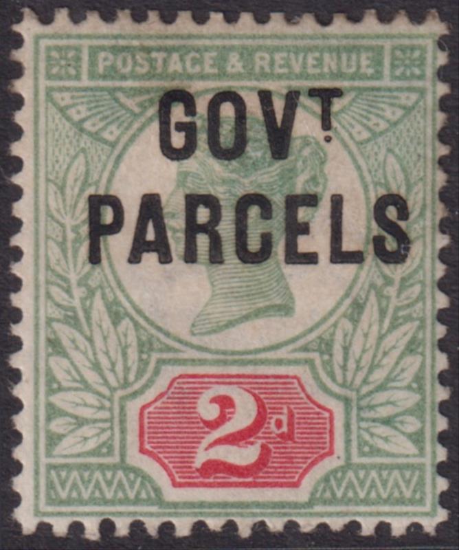1891 2d grey-green & carmine, with GOVT PARCELS ovpt. SG O70. Cat £150. HH mint. (Image)