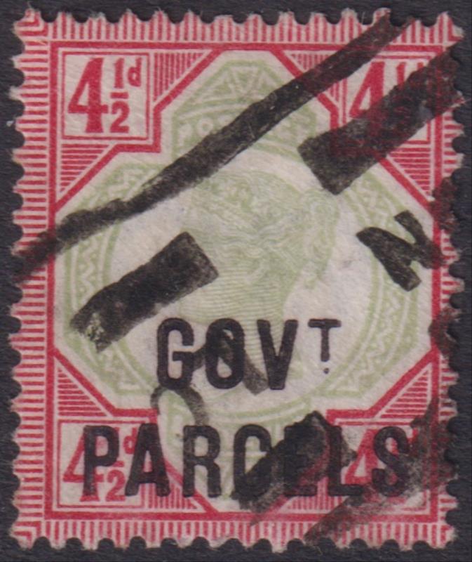 1892 4½d green & carmine, GOVT PARCELS ovpt. SG O71. Cat £180. GU. (Image)