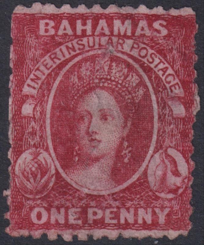 2812 M imageBahamas 1863 1d QV carmine-lake (aniline), minor surface scuffs. SG 22. Cat £160. Unused no gum. (Image)