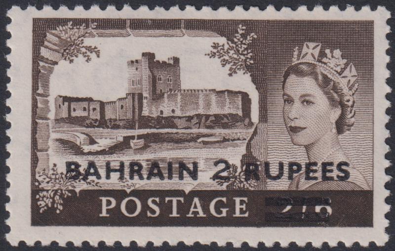 2820 * imageBahrain 1960 2r on 2/6d Castle, DLR printing, Type III ovpt. SG 94b. Cat £26. MUH. (Image)