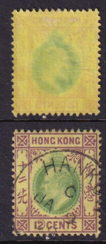 2849 U imageBritish Post Offices in China-Hankow 1904 12c EVII green & purple-yellow, multiple crown CA wmk. SG Z495. Cat £32. FU cds. (Image)