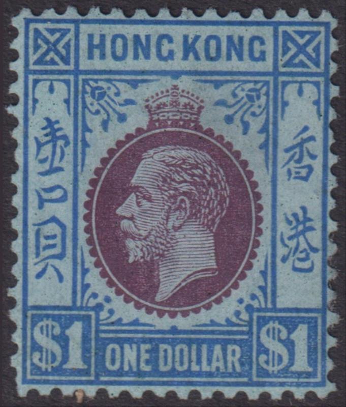 3021 M imageHong Kong 1921 $1 GV purple & blue on blue, mult script CA wmk. SG 129. Cat £50. Mint. (Image)