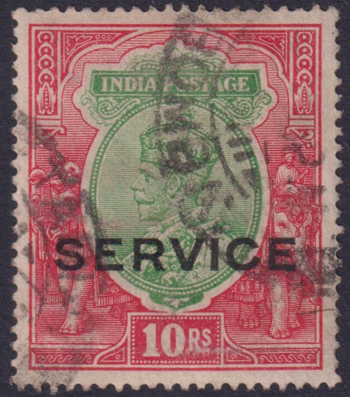 3034 U imageIndia 1931 10r GV green & scarlet, "SERVICE" ovpt. SG O120. Cat £65. FU. (Image)