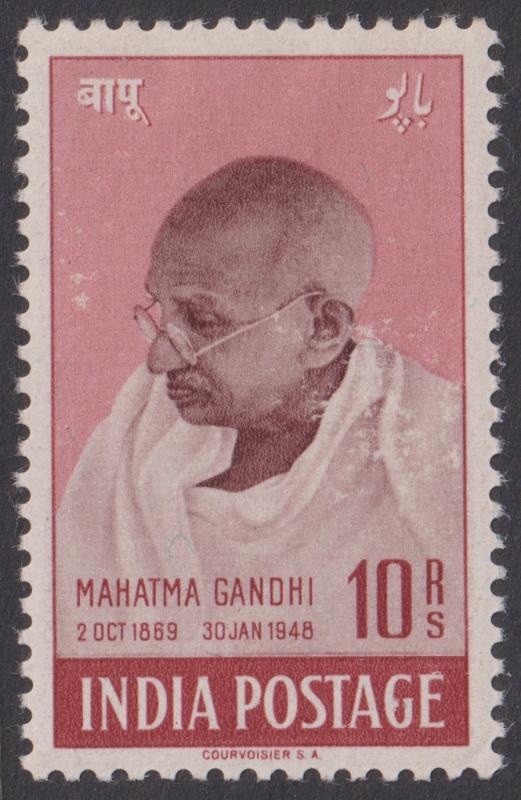 3036 M imageIndia 1948 10r Gandhi. SG 308. Cat £400. Mint. (Image)