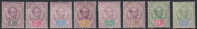 3111 M imageSarawak 1888-92 Sir Charles Brooke short set of 8 (1c-12c), no 10c. SG 8-16. Cat c£200. Mint. (Image)