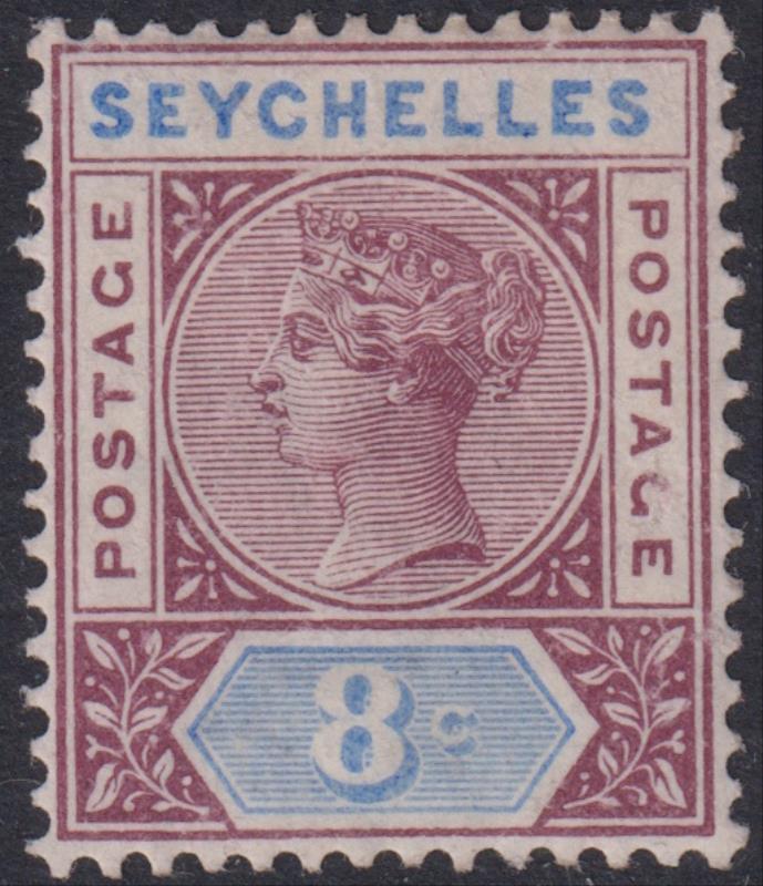3114 M imageSeychelles 1892 8c QV (Die II). SG 11. Cat £16. Mint. (Image)