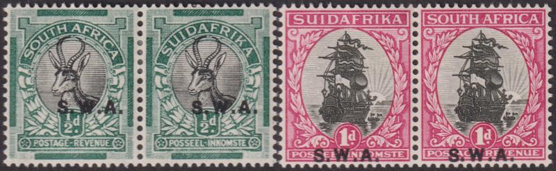 South West Africa 1930 ½d, 1d Pict horiz bilingual pairs, rotogravure printing. SG 68-9. Cat £43. Mint. (Image)
