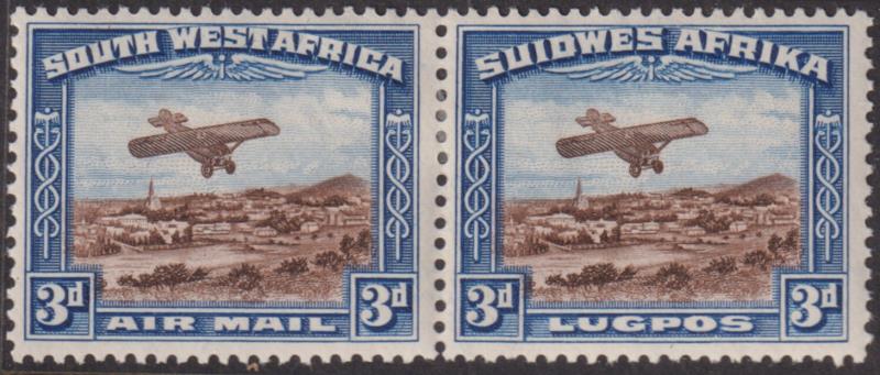 South West Africa 1931 3d Airmail horiz bilingual pair. SG 86. Cat £29. Mint. (Image)