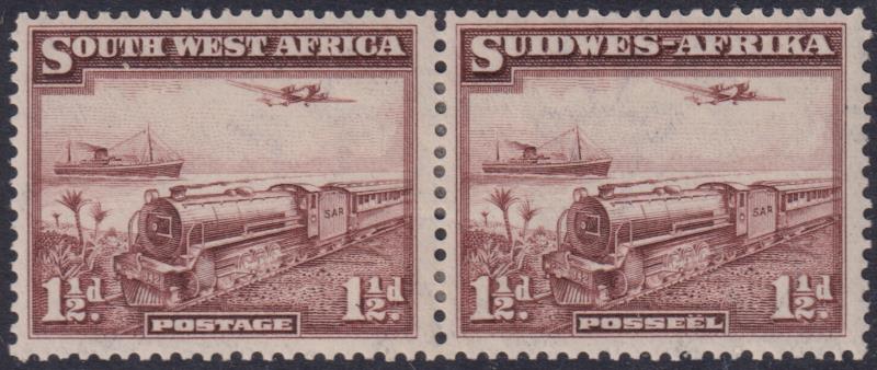 South West Africa 1937 1½d Mail Train horiz bilingual pair. SG 96. Cat £30. Mint. (Image)