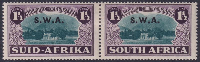 South West Africa 1939 1½d Huguenot blue-green & purple bilingual horiz pair, ovptd "S.W.A". SG 113. Cat £38. Mint. (Image)