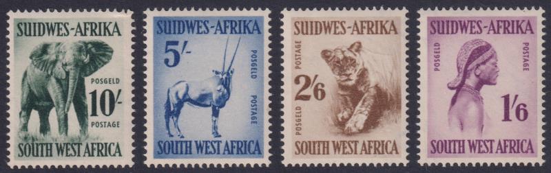 South West Africa 1954 defin set of 11 (1d - 10/-). SG 154-65. Cat £55. MUH. (Image)