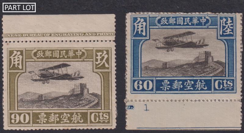 China 1921 15c-90c Air original set of 5 with striped tailfin (Curtis Jenny biplane over Great Wall of China). With cellophane